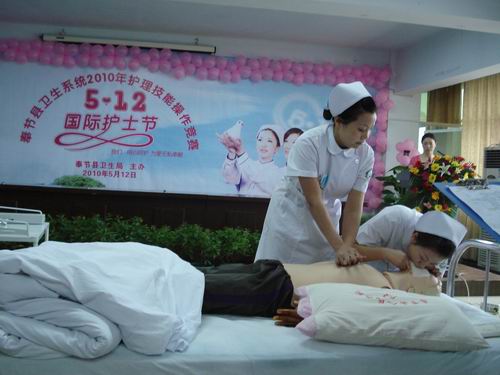选手们不分白天黑夜、加班加点、不厌其烦地一遍又一遍训练着。从整个流程到每个细节,从一个眼神的传递到一句话语的抑扬顿挫,都细细揣摩,力求精益求精。嗓子哑了,不管;手起泡了,不管;孩子没人做饭,不管……天道酬勤,5月12日在县卫生局组织的全县“心肺复苏”技能赛上,我院代表队以协调娴熟的动作、精准无比的手法获得了当之无愧的第二名,给评委和现场观众留下了深刻印象。五月是收获的季节。我们用拼搏和顽强演绎南丁格尔精神,我们用智慧和勤奋谱写献给第九十八个国际护士节的欢乐乐章,我们用实力和素养证明中医院有一支能打硬仗的护理队伍!各位选手以顽强拼搏、精益求精的出色表现,为我们树立了榜样,赢得了荣誉。我们将珍惜这份荣誉,以荣誉为动力,在未来的征途上争当先进,再创佳绩。
