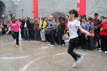 2011年9月28日上午,由县“六城同创”领导小组、县政协办公室主办,县体育事业局、永安镇人民政府承办,明月社区和我院协办的以“提高社区居民素质,增进邻里间友谊,让体育走进社区、楼院、单位、学校”为目的,推动“健康奉节”建设,推进“六城同创”活动为宗旨的2011年奉节县“全民健身月”明月社区与中医院“六城同创•国医杯”居民趣味体育活动如期在凤凰梁登山步道广场举行。驻社区的16个共建单位及相对应的16个居民小组,分别组成8支参赛队伍,积极参加一分钟计数跳绳、25米往返接力赛跑、拔河共3项趣味横生的比赛项目。县政协主席、县“六城同创”领导小组常务副组长李晓华同志、县政协副主席谭德金同志、县“六城同创”领导小组办公室主任谭发斌同志及明月社区、各共建单位相关领导出席了活动开幕式。我院党支部书记、院长史克祥同志、分管副院长陈孔建同志出席活动开幕式。