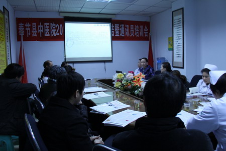 2012年1月4日下午,和煦的暖阳驱散着寒冬,奉节县中医院的小会议室气氛热烈,全体中层干部及通员在这里聆听由县委宣传部宣教科科长李发琼讲授的“探讨新闻写作”培训的专题讲座。
