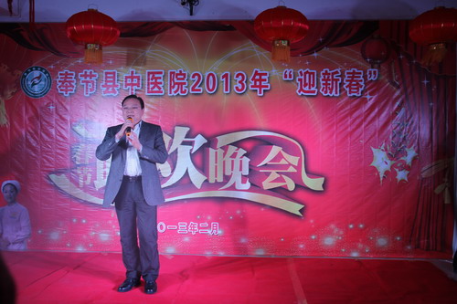 为庆祝新春佳节,丰富职工文化生活,县中医院2013年春节联欢晚会于2月6日在县卫生局大会议室隆重举行,医院共17个节目参加了演出,全院职工及部分家属观看了晚会,院党政领导班子亲临现场指导。党总支书记、院长史克祥为晚会作了热情洋溢的新年贺词。