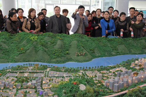 全体考察人员首先来到西部新区指挥部展示厅,听取了规划局工作人员对新院址的详细介绍。他说,中医院占地50亩,位居朱衣冒峰社区,是西部新区的中心地段。同时也对西部新区的整体规划也作了全面的介绍。