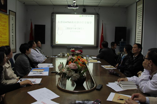 县中医院党总支书记、院长史克祥及其他领导高度重视,亲临培训现场。内一科邓林医生讲解了人感染H7N9禽流感的诊疗方案,公卫科刘彬玲对人感染H7N9禽流感医院感染预防与控制做了详细的讲解。