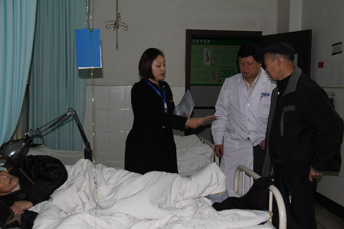 2014年2月14日至县中医院骨科治疗,因为坏死严重进行了左小腿截肢术。李金林老人膝下无子无女、家境贫寒,一位好心的亲戚到医院对他进行了陪护。老人本身就生活困难,靠救济金生活,如此一来更是雪上加霜。医院得知这个情况后,立即决定启动医院的“爱心医疗救助基金”,综合考虑了农合报销和民政救助后的费用情况,经院长办公会讨论,给予李金林老人2000元的救助。