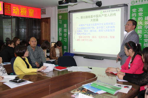 2014年4月16日下午,在我院小会议室里,开展了一场题为《群众路线是党的生命线》的专题讲座。医院全体党员及临床医技科室正副主任、护士长、行政职能科室干部、支部书记、支部委员、团支部书记等参加了此次讲座。主讲人为院党总支书记、院长史克祥。