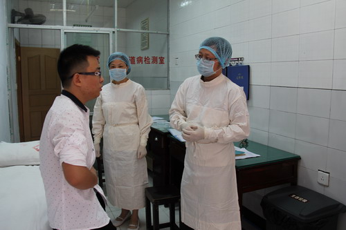 此次演练准备充分,按照《突发公共卫生事件应急预案》的具体要求,制定了详尽的演练方案。史克祥院长十分重视传染病防控工作,亲自指挥,参与演练;肠道门诊医生、护士、导医台工作人员均按照各自的岗位职责妥善处置病人,做好预检分诊、消毒隔离、疫情报告等工作;杨晓云副院长、陈孔见副院长积极组织专家会诊。