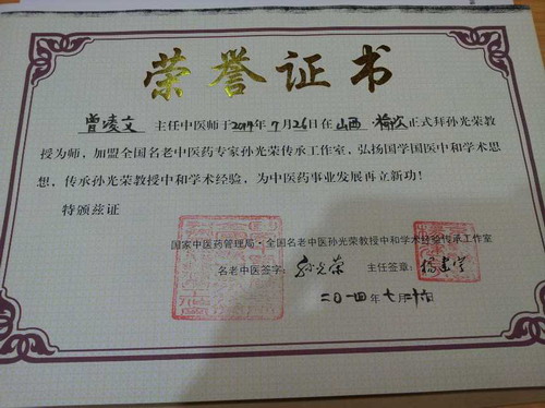7月26日,县中医院曾凌文主任中医师在山西榆次的拜师仪式上正式拜中国国医大师孙光荣为师,加盟全国名老中医药专家传承工作室。