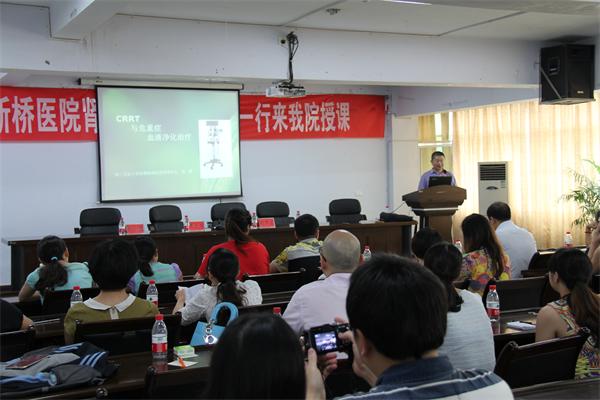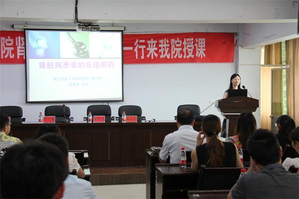 目前我院血液透析科拥有6台血液透析机,长期于我院血液透析病员40余人,为促进医院发展及医务工作人员业务知识学习,特于9月12日下午,我院特邀重庆市新桥医院肾内科专家一行为我院医务人员进行了一次“肾功能衰竭知识讲座”。赵景宏主任重点讲解了《肾脏病患者的合理用药》,从调整血脂、抗生素应用、血压控制、抗凝用药、抗血小板聚集等方面详细介绍了肾脏病患者的合理用药。赵主任强调,医护人员必须要清醒地认识到合理使用抗生素的责任与使命,尤其是肾脏病患者。