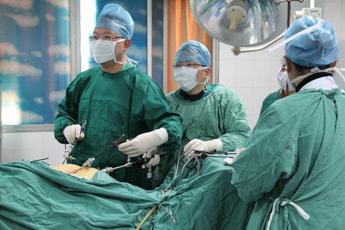 2014年12月17日重庆市劳动鉴定委员会专家、九龙坡区中医院外科主任医师刘忠铭到我院手术室亲自参加外科微创手术和腹腔肿瘤切除手术指导,术中术后分别给县中医院外科医师们详细讲解关于手术的解剖知识、术中注意事项、术后治疗、手术新进展等知识,以充实我院的医务人员的外科知识,从而使我院外科得到更进一步提高,也体现我院在人才培养方面走送出去请进来的人才培养路。