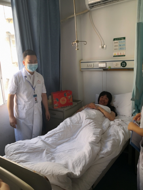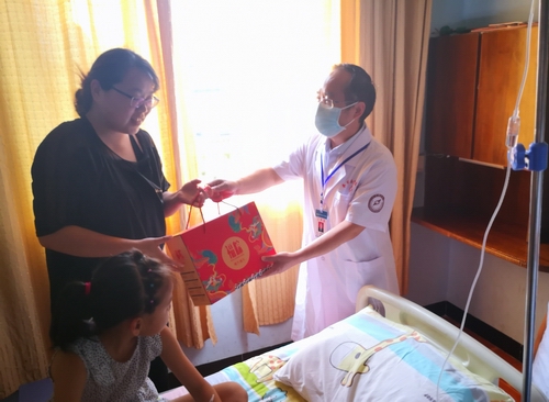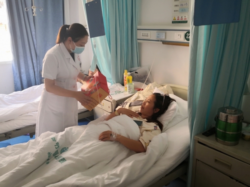 “您好,医院特意为大家准备了粽子,祝您们端午安康,早日康复”。毛代方把粽子和咸鸭蛋放在王大妈的手中,说着嘱咐她的话。王大妈接过含有浓浓情意的粽子和咸鸭蛋时,脸上露出了开心的笑容,激动地连声道谢。