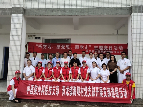 为全面回顾中国共产党建党99周年以来走过的光辉历程,巩固“不忘初心、牢记使命”主题教育成果,推动党员干部做出忠诚干净担当的“好样子”,7月4日,奉节县中医院内科医技党支部与青龙镇海坝村党支部连线,开展“送医进村、温暖到家”主题党日活动,县中医院内科医技支部、青龙镇海坝村支部全体党员共计33人参加活动,青龙镇镇府相关领导及卫生院领导应邀参加活动。