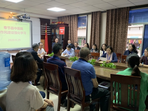 为进一步加强作风建设,推进从严治党,切实增强医院党员领导干部遵规守纪的自觉性、坚定性。9月29日上午,奉节县中医院在医院行政办公区6楼会议室召开“作风建设强化学习”会议,在家的院领导班子、行政后勤共计60余人参加会议。