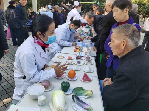 活动现场,内分泌科医生用“食物模具”为居民讲解饮食对糖尿病患者的重要性,护士们为患者监测指血糖,量血压以及进行艾条灸、耳穴压豆等中医护理操作,深受居民喜爱。发放百余份糖尿病健康宣教资料,使大家加深了对糖尿病的了解和认识,真正做到早发现、早预防、早治疗。内一科护士带领现场居民练习了“二十四式太极拳”和“八段锦”,太极拳和八段锦均被列入中国新冠患者康复方案,可增强患者体质、预防疾病。