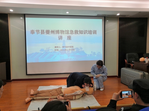 为提升奉节县夔州博物馆处置突发事件能力,普及急诊急救知识,使职工掌握现场急救操作技能,该博物馆于11月19日邀请奉节县中医院“夔州工匠技术能手”为馆内20余名职工进行了急诊急救知识培训。
