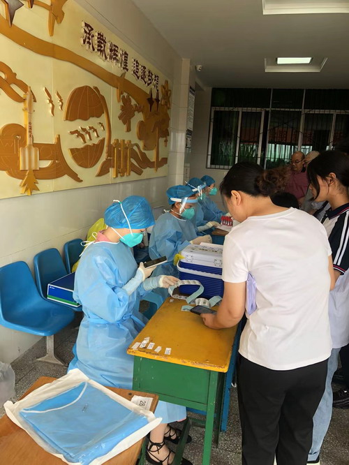 2022年9月5日上午,奉节县中医院抽调15名医护人员及行政后勤人员,到联系的第一所学校重庆市奉节县永安中学校为师生员工核酸检测采样,共计采样4718人。