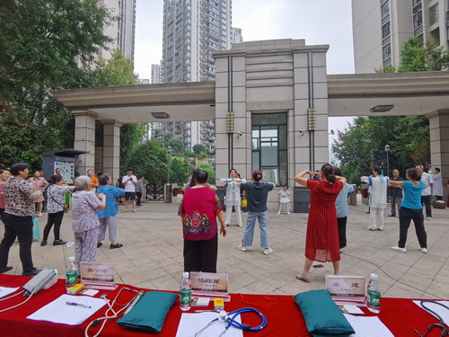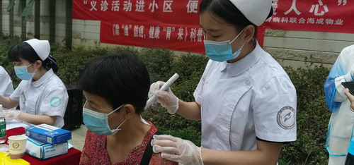 随后,医护人员带领居民们一起练习八段锦养生保健操;免费为需要查HP的患者进行了14C呼气试验检查,测量血压、检测血糖,并为居民作穴位贴敷、耳穴压豆、艾灸、穴位按摩等中医护理技术体验,宣传普及中医养生保健知识。