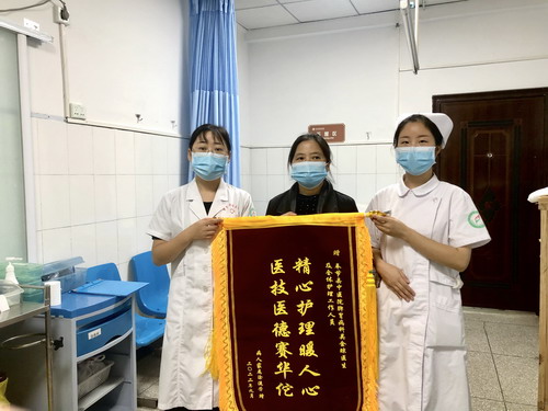 近日,奉节县中医院一名患者王某的家属涂大姐将一面绣有“精心护理暖人心,医技医德赛华佗”的锦旗送到了脾胃病科医护人员手中,以感谢全科医护人员对王大哥的精心治疗与护理。