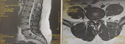 28岁的男性患者,体重达110kg,腰腿痛半年余,长期在外务工,在当地行针灸、理疗及口服消肿止痛药物效果不佳,症状反复并逐渐加重,严重影响日常生活,近日劳累后再次出现腰部疼痛并右下肢疼痛与麻木无法长距离行走,回家乡到奉节县中医院就诊。经检查诊断为腰椎间盘突出症并神经根病。