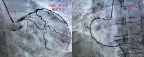 患者因不稳定型心绞痛入院,冠脉造影显示:左主干狭窄约95%,右冠状动脉狭窄约99%。左主干是心脏供血的主要通道,右冠亦为主要血管,双支同时重度狭窄在临床上属高风险病变,意味着患者随时可能因血管急性闭塞引发大面积心肌梗死,猝死风险极高。